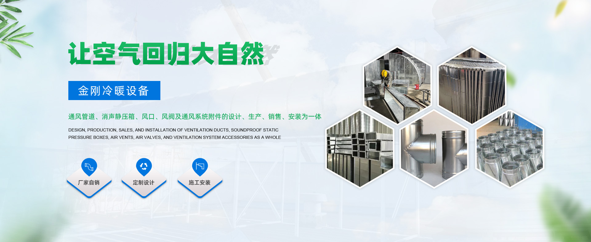 重慶金剛冷暖設備有限公司是集通風管道、消聲靜壓箱、風口、風閥及通風系統(tǒng)附件的設計、生產(chǎn)、銷售、安裝為一體的專業(yè)企業(yè)。擁有日生產(chǎn)、加工鍍鋅板、不銹鋼板、各型機制風管3000平方米的能力。我司產(chǎn)品形式多樣,結構新穎,連接牢靠,強度高、密封性好,符合規(guī)范、節(jié)省投資、安裝方便,能夠滿足廣大客戶的各種要求。公司堅持以“卓越、創(chuàng)新、快捷、誠信”的服務理念,為廣大客戶提供高質(zhì)、高效、方便的服務。在完建的工程中取得了廣大客戶的一致好···